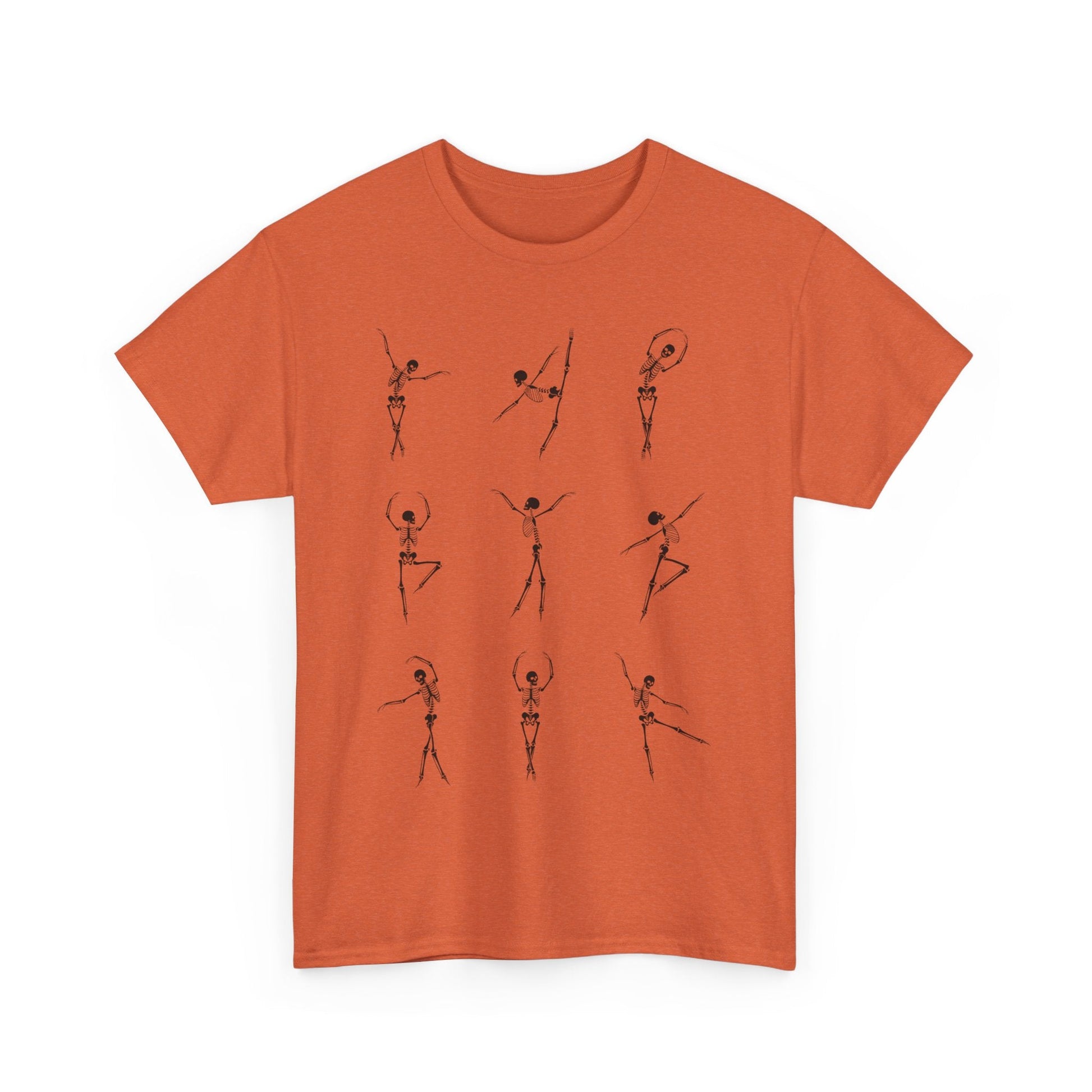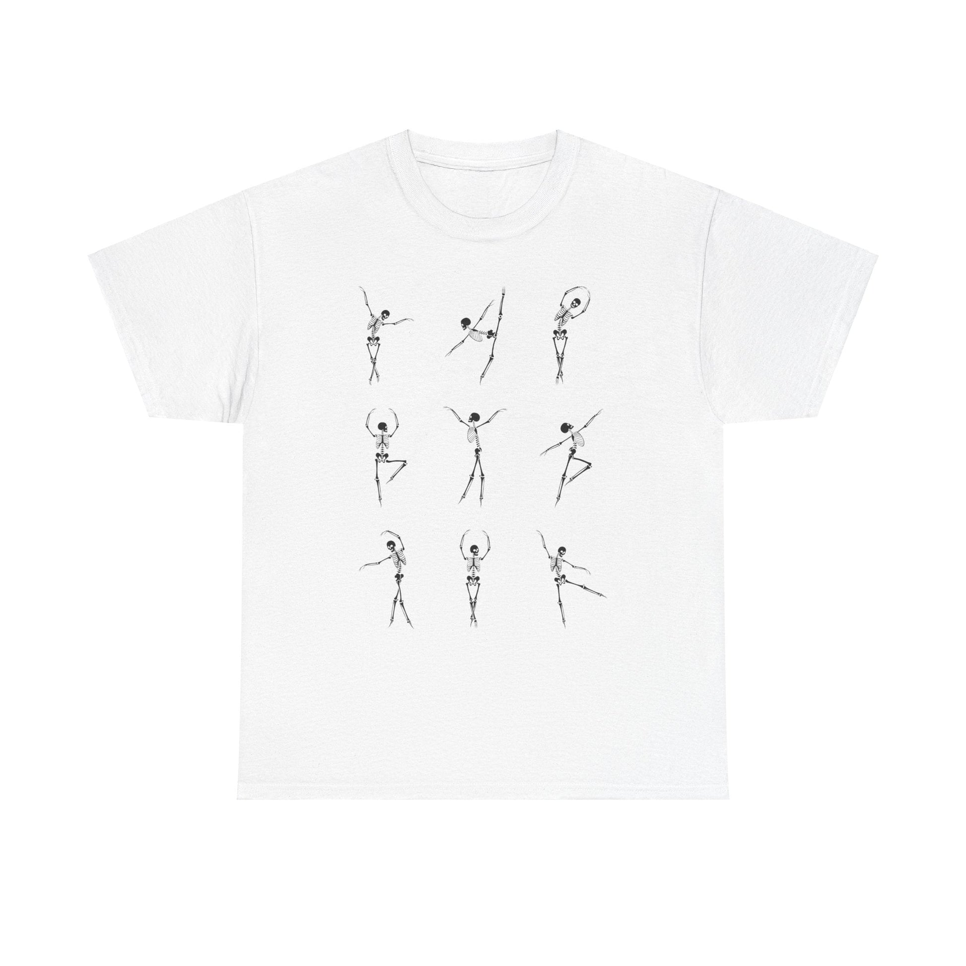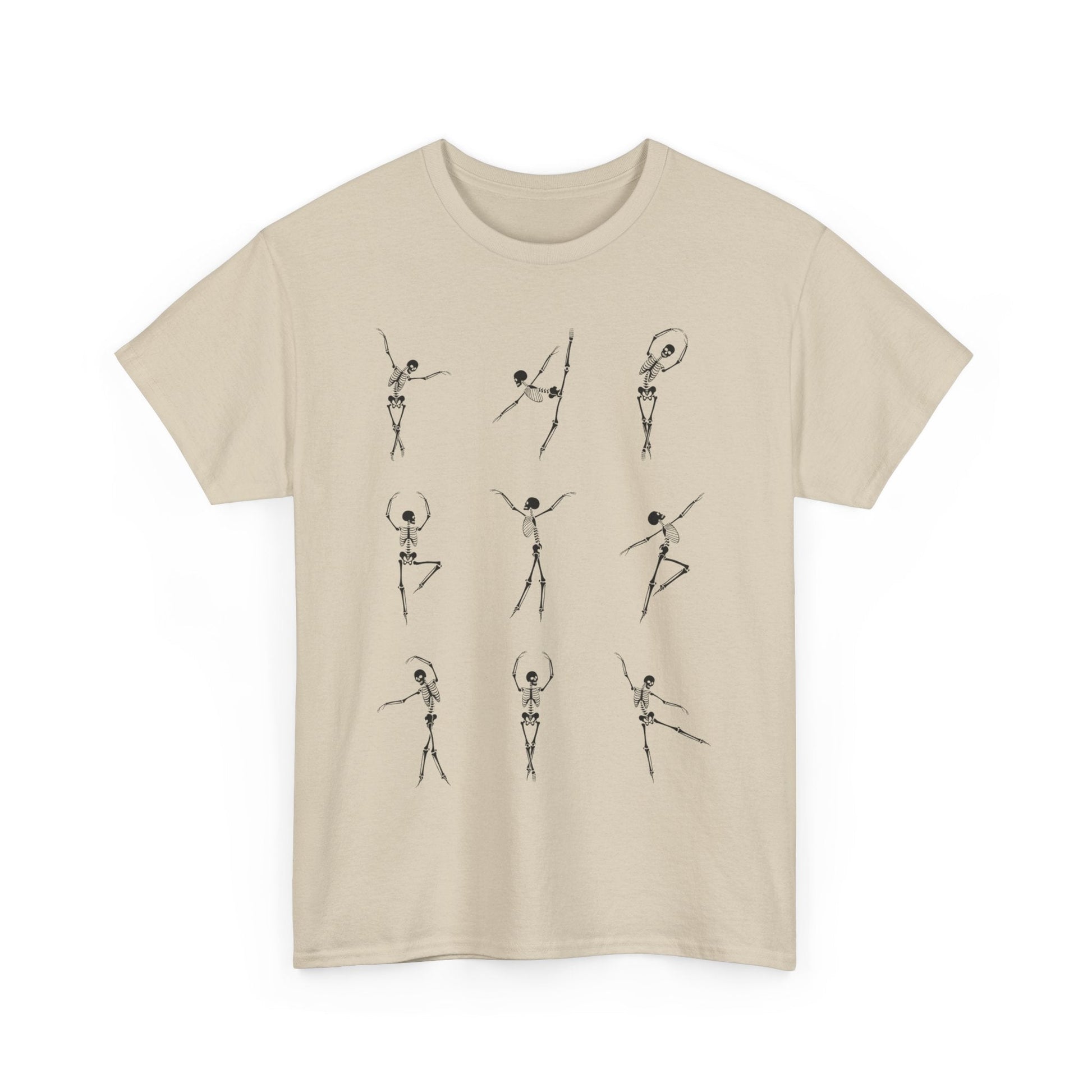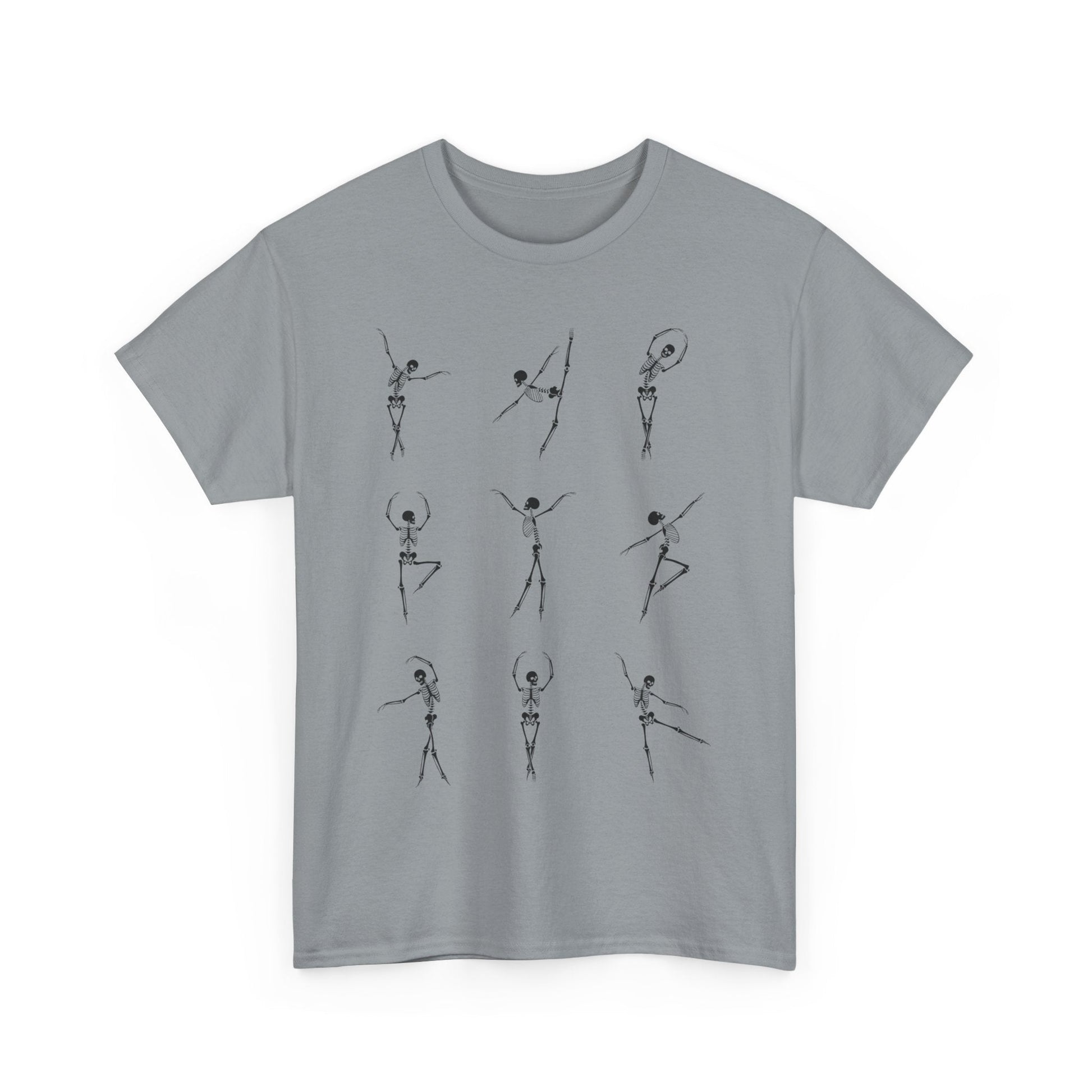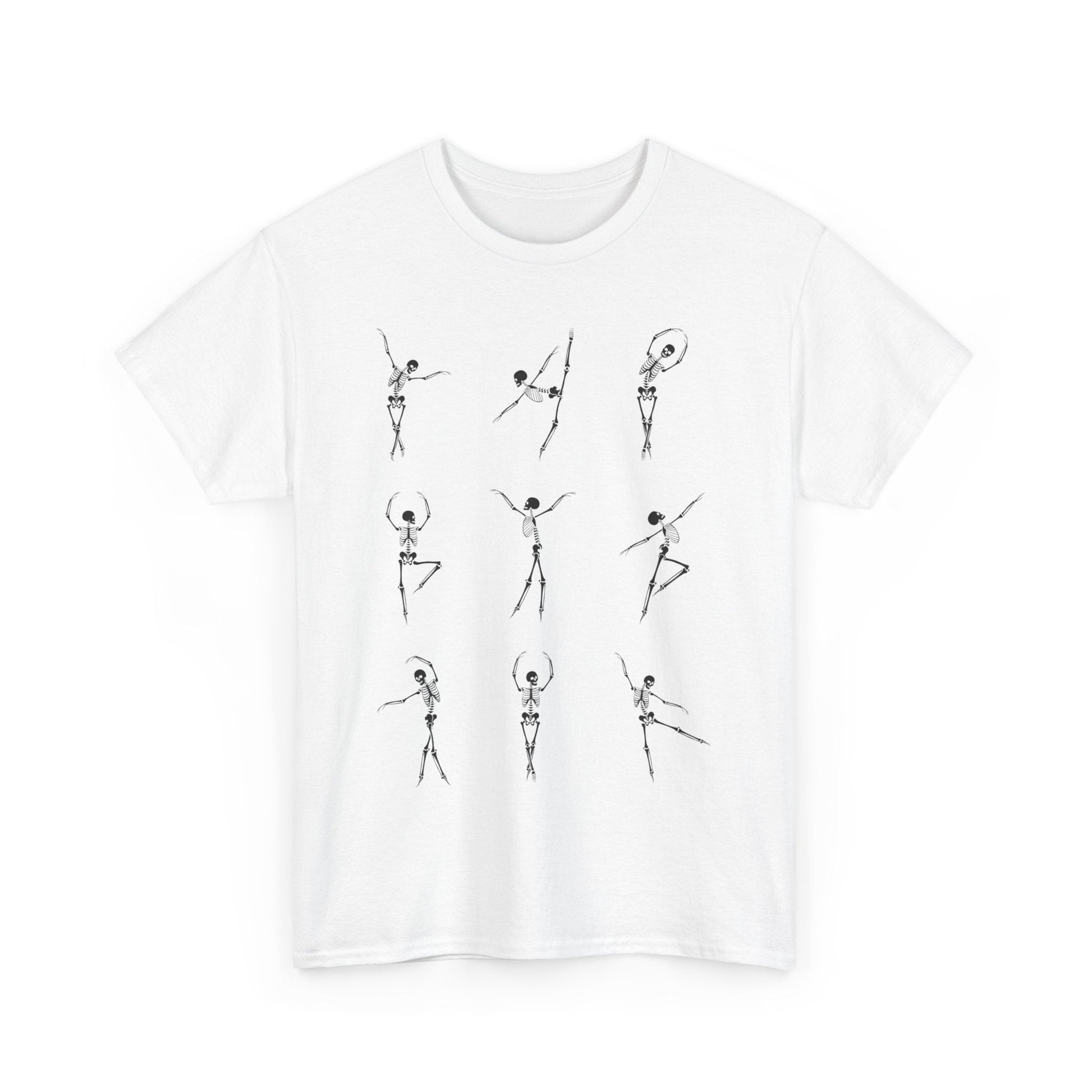 Halloween Themed Unisex Tee - Skeleton Ballerinas - Elevate your wardrobe with this basic staple made from 100% cotton for year-round comfort. The personalized design adds a touch of uniqueness, while the classic fit ensures a comfy, relaxed wear. Perfect for casual or semi-formal occasions, this tee is ideal for Halloween celebrations and those who appreciate ethically and sustainably made clothing.